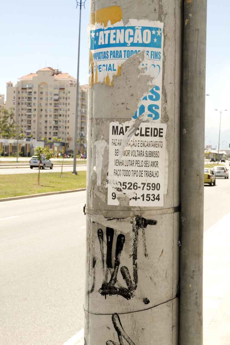 Os anúncios são variados. Mãe Cleide enaltece no poste da avenida das Américas que traz a pessoa amada e ainda a deixa submissa. Tentamos ligar para os telefones do cartaz , mas até o fechamento dessa matérias, permaneciam desligados. Vai ver que ela mesmo arrumou um amor ou mudou de estratégia. No mesmo poste, uma propaganda chama para uma noite de forró arretado e promete fazer a festa e divertir todo mundo a noite toda pro apenas R$10.