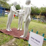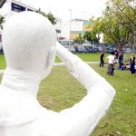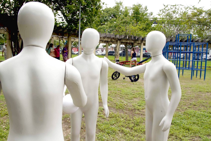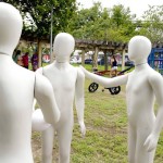 Os poucos segundos de corpos estáticos diante da natureza e da arte fazem um certo efeito. Faz com que uns pensem na importância que é ter uma planta, um jardim, o verde em nossas vidas, mas faz também com que as pessoas não pensem literalmente em nada. E assim foi o flashmob de estudantes e professores de artes plásticas que enfeitaram com suas obras , sábado dia 12 a Praça do Parque das Rosas , na Barra, o parque homônimo. Eram cerca de 50 espalhadas em toda suas extensão.