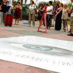A idealizadora e curadora do evento chamado Arte no Park, Lia do Rio, o evento é um exercício de espaço e em escalas. Com um cordão onde se encontravamm fotos de seus antepassados ela explicou a importância do movimento: