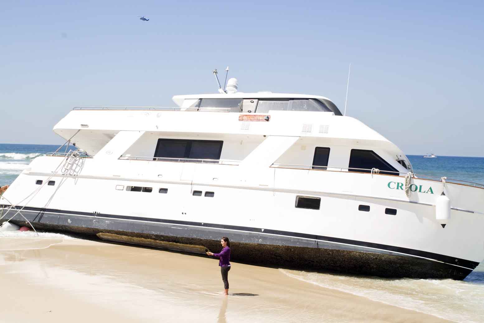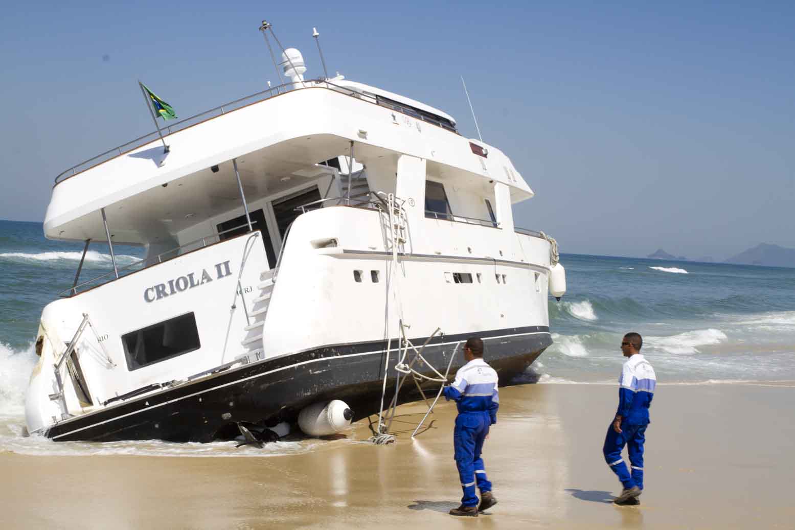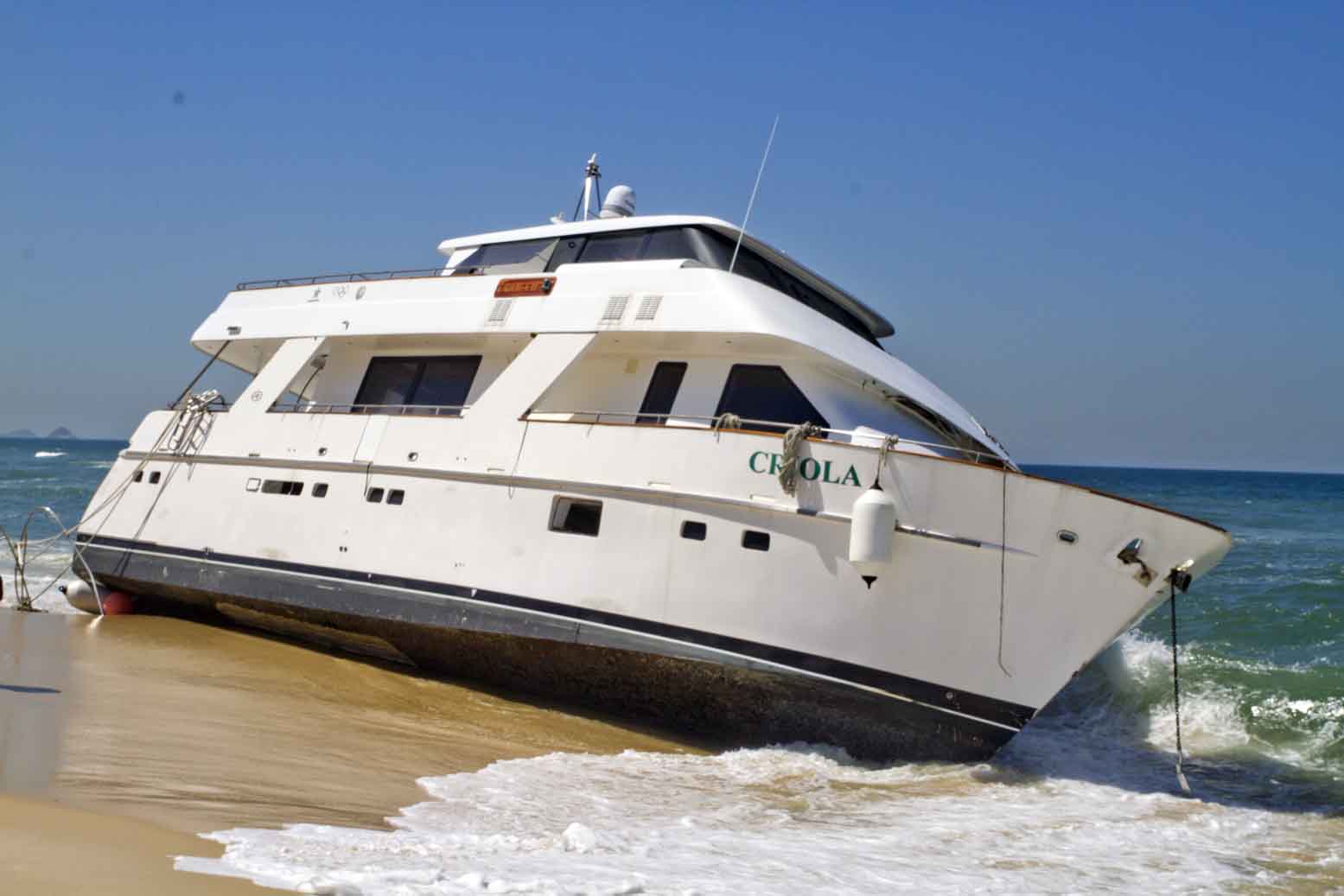 O iate, identificado como Criola II, encalhou na praia no sábado (13). Dos três tripulantes, um foi encaminhado para o hospital com ferimentos leves. De acordo com a Marinha, o inquérito administrativo sobre o acidente já foi instaurado. A previsão de conclusão, no entanto, é de 90 dias.