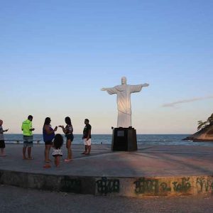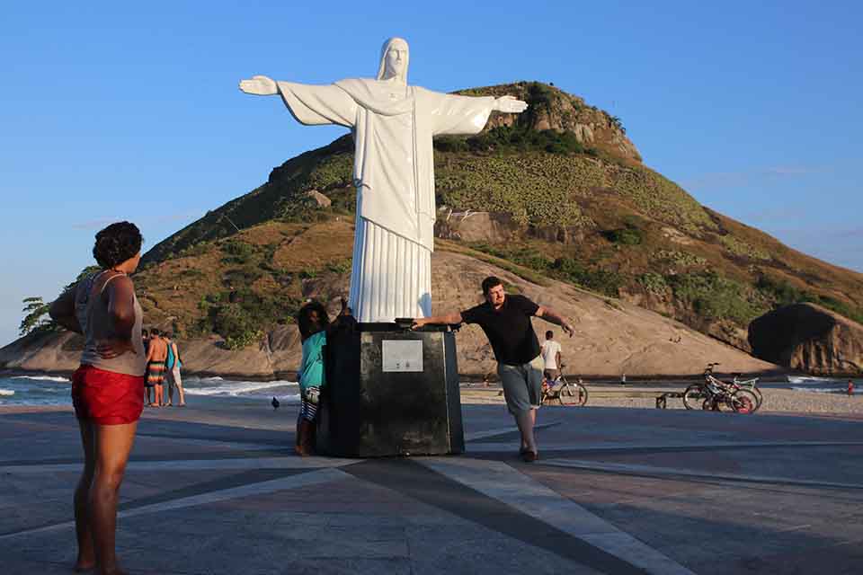 Foi assim com surpresa que amigos argentinos hospedados no Hotel Atlântico Sul ficaram ao enxergar bem na praça do Pontal a réplica do Cristo Redentor.