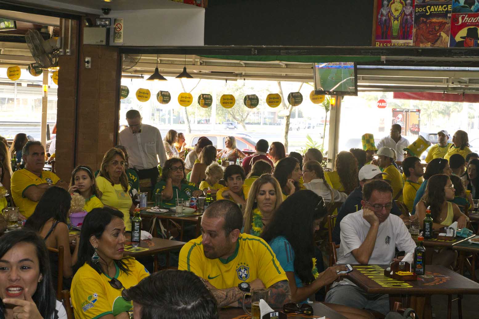 A animação do início deu lugar a frustração no final. Como no seriado mexicano aonde o personagem principal dizia: “Foi sem querer, querendo”… que o México atrapalhou a festa dos brasileiros .O trânsito uma hora antes do jogo contra o México pela segunda rodada da Copa já demonstrava a euforia de chegar mais cedo em casa ou nos bares para se reunir em frente a TV. No Santa Therezinha e no Planeta do Chopp a alegria já tomava conta do salão. No Planeta por exemplo, onde a camisa do goleiro Júlio Cesar permanece em destaque na parede já seria um prenuncio do que vinha depois. Julio trabalhou bastante no segundo tempo deixando tenso os torcedores. No CEVADAS SA , foi necessário dois seguranças para organizar a entrada e evitar super lotação já que desde cedo todas as mesas estavam tomadas. Numa delas, encontramos o ex-técnico do Flamengo 6 vezes campeão brasileiro, Andrade que comentou o jogo no final: