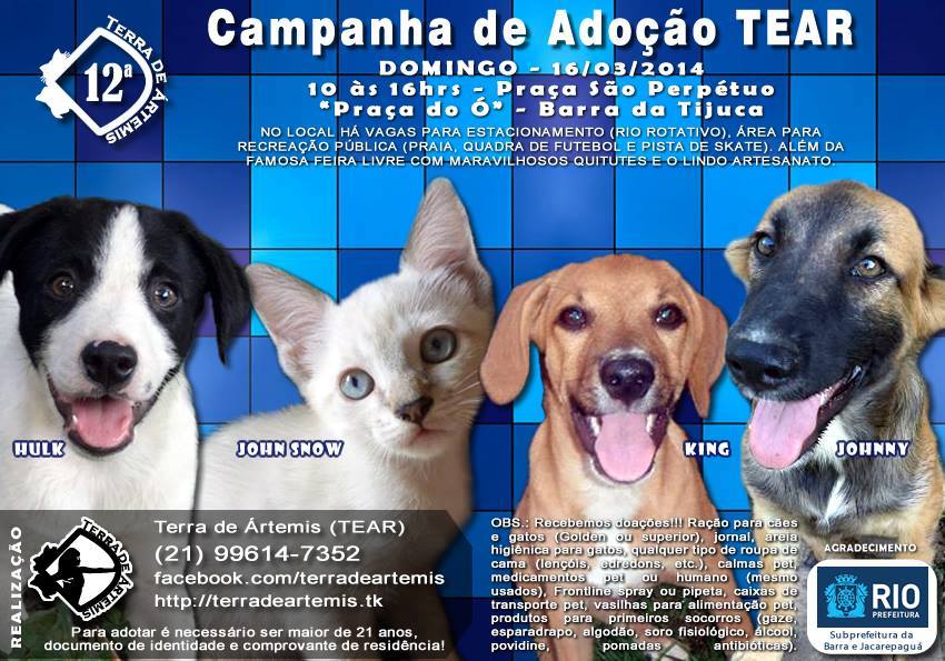 No sábado , dia 16, tem feira de adoção da Praça do Ó