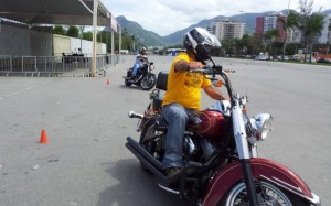Quem passava pela Avenida Salvador Allende poderia achar que era uma simples aula para quem queria tirar carteira de habilitação para motos. Mas um olhar mais atento dava para reparar que as motos eram de cilindradas maiores e não as CGs ou Titans que costumam ser utilizadas nas auto-escolas. Na verdade, era muito mais do que isso. Se tratava do curso Rider Program Rio. O nome é pomposo mas é simples. É um curso de um dia sobre o aperfeiçoamento de pilotagem de motos grandes, principalmente, as harleys que são muito mais pesadas e tem como finalidade principal permitir que o piloto domine a máquina e sinta-se confortável em qualquer situação.Segundo um dos divulgadores, Dotô Badá Barreto, é na baixa velocidade, em situações de trânsito pesado e nas paradas em sinais ou estacionamento que os pilotos tem muita insegurança e situações que podem causar sérios danos aos pilotos e garupas.