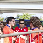 Falta melhorar. Foi a frase mais ouvida entre as inúmeras filas de passageiros no novo Terminal Alvorada , tanto na TransOeste quanto na recém inaugurada TransCarioca. Numa tarde de rush antecipado por causa de um dos jogos da fase de grupos do Brasil, pegamos o BRT na estação Barra Sul/Pontões em direção ao Galeão para testar o sistema. Permanecemos 15 minutos a espera de uma composição paradora em direção ao terminal, já que todas passavam direto. Nesse pequeno intervalo flagramos dois torcedores chilenos perdidos andando na pista sentido Barra. Foi um presságio. (no site, fotos)