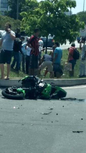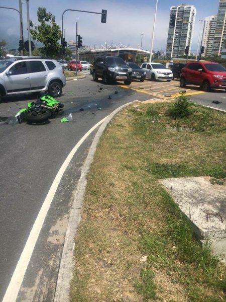 As redes sociais ontem só falavam do assunto. O senador da república e ex-jogador Romário se envolveu em acidente automobilístico na avenida das Américas ontem (16), na Barra da Tijuca, no cruzamento em frente a estação Riviera. Ele prestou socorro à vítima no local e só saiu depois que o rapaz foi levado pelos bombeiros. O Porshe Panamera do jogador ficou parcialmente destruído na lateral carro , mas moto Kawazaki do motoqueiro Ernesto Gil Cavalcante da Silva, de 42 anos, ficou totalmente destroçada no asfalto. Com impacto da batida o motoqueiro foi parar no canteiro da via. A vítima fraturou a bacia e terá de passar por uma cirurgia.