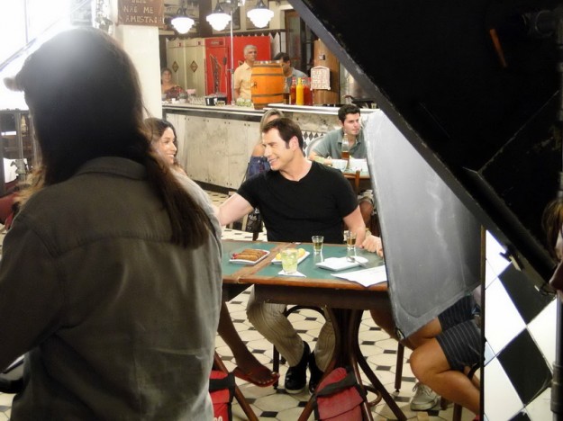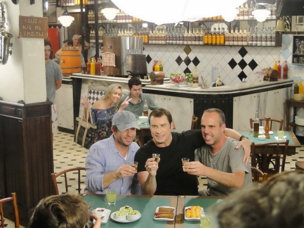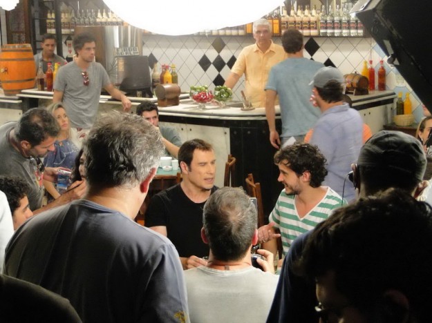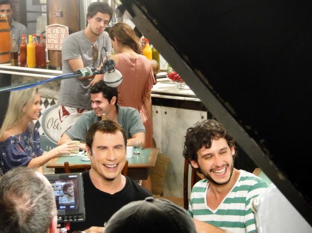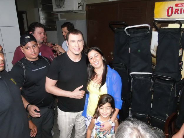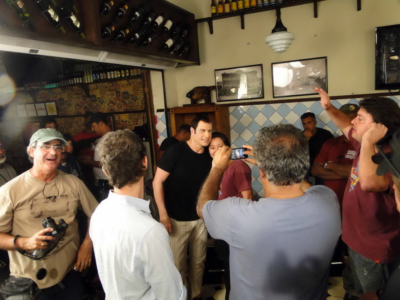 Até aí nada demais, já que conseguimos uma capa lá com a Juliana Paes que foi mãe recentemente e flagramos tantas outras gravações, como a do Nando “Percoço” Cunha ou o Estrelas, com Angélica; comerciais de cervejas famosas com “diretoria”, craques da música e do futebol também. Gravações de novelas, nem se falam! Ficamos de prontidão até que na segunda-feira que iniciou a semana saiu no Jornal Extra que John Travolta estaria com viagem agendada para gravar no Rio um comercial de ….cachaça?! Pego o telefone e ligo pro Ricardo: